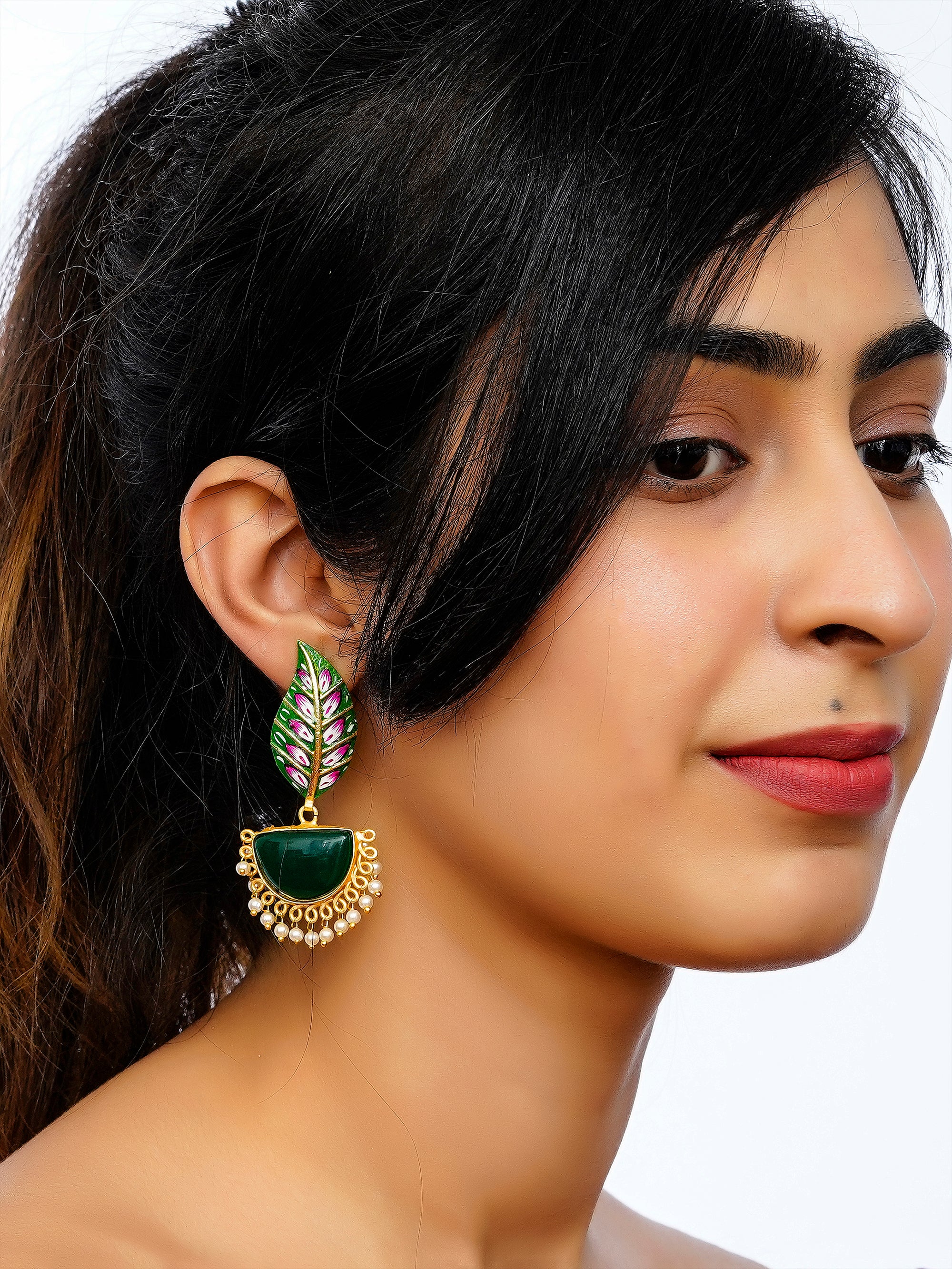 Traditional Meenakari Earrings Brass Jhumki Earring