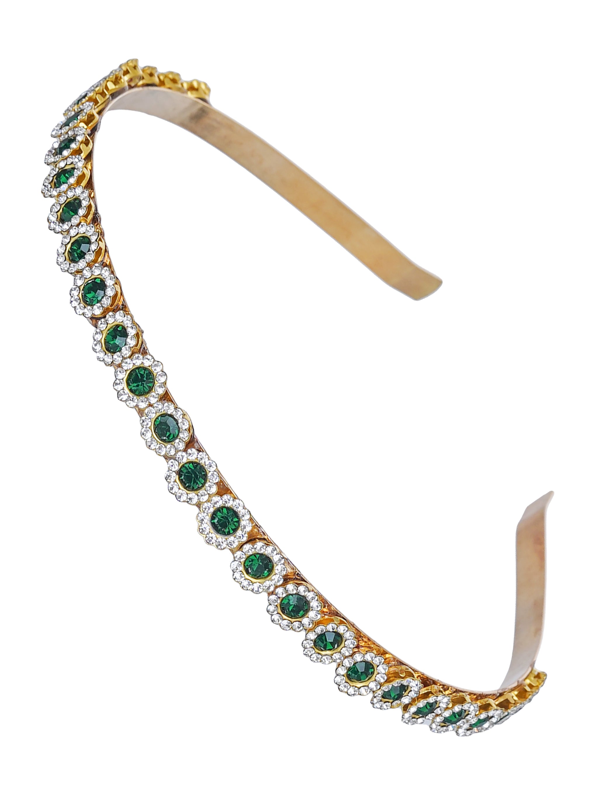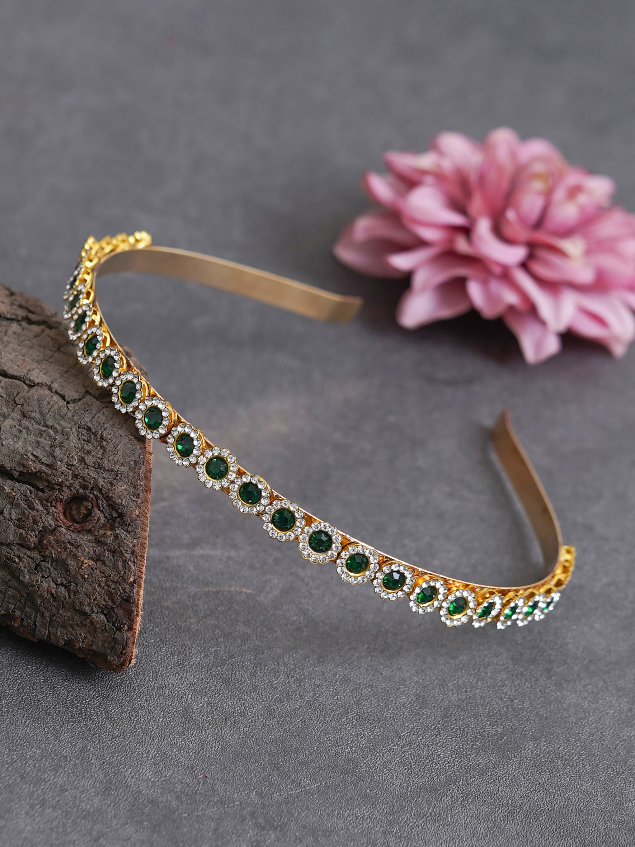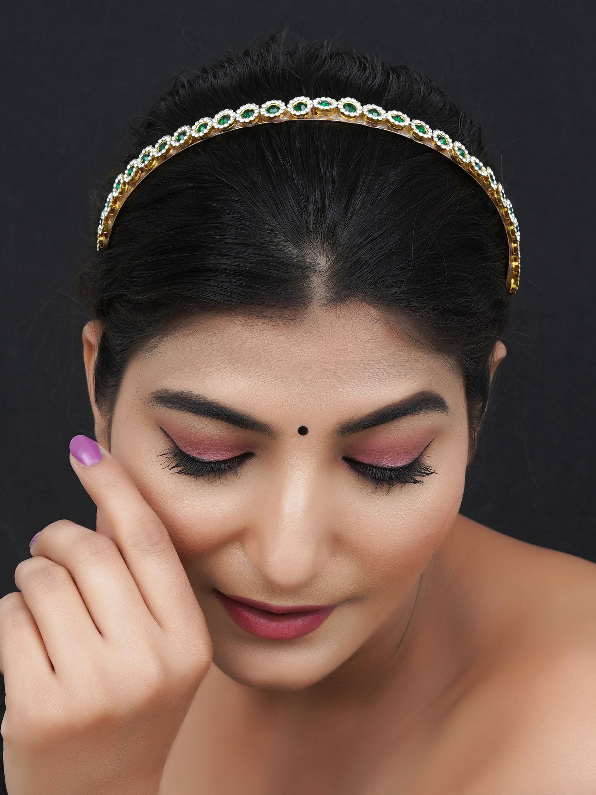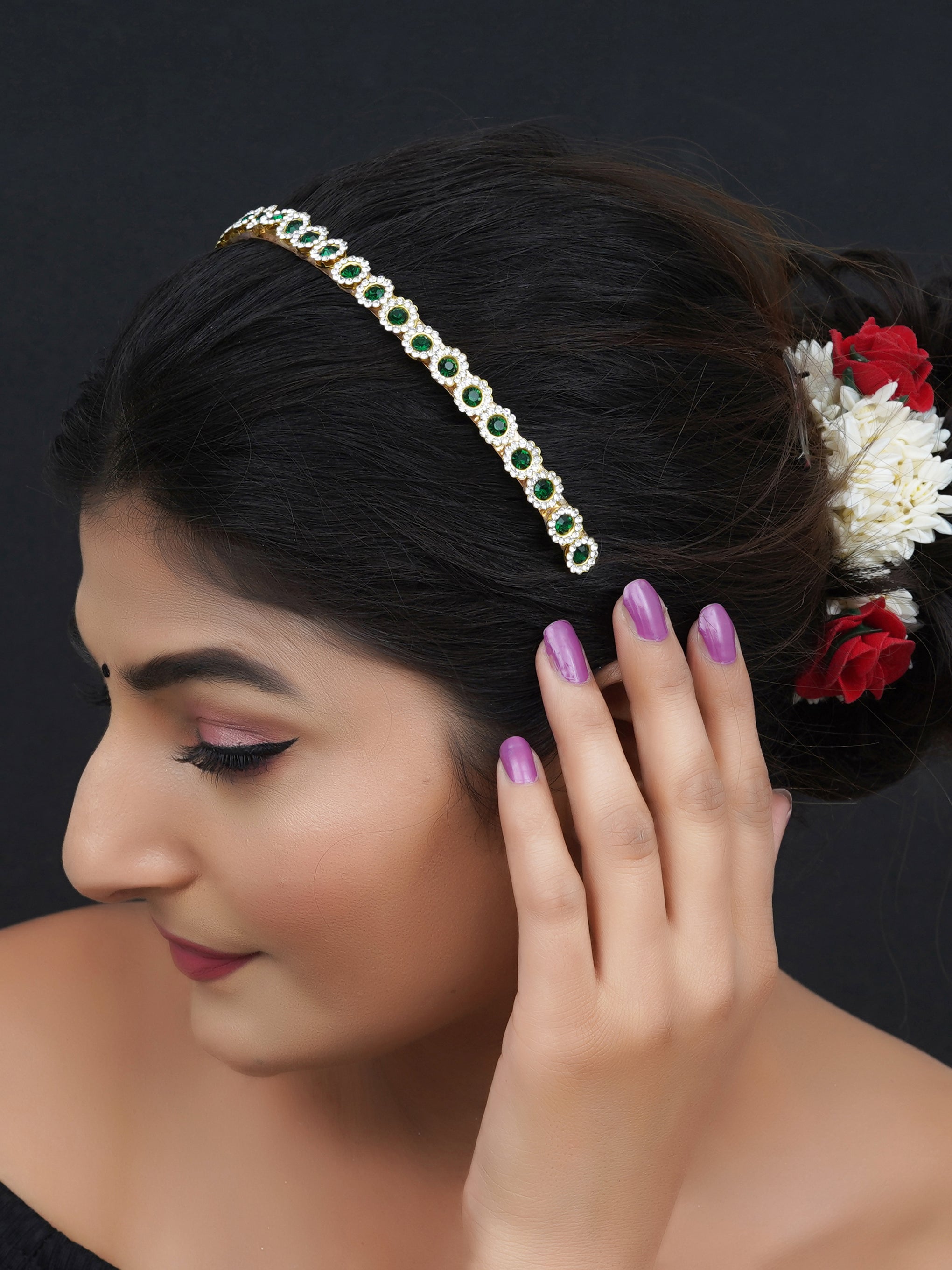 Gold Plated Brass Hairband/Mathapatti Hair Band (GREEN)