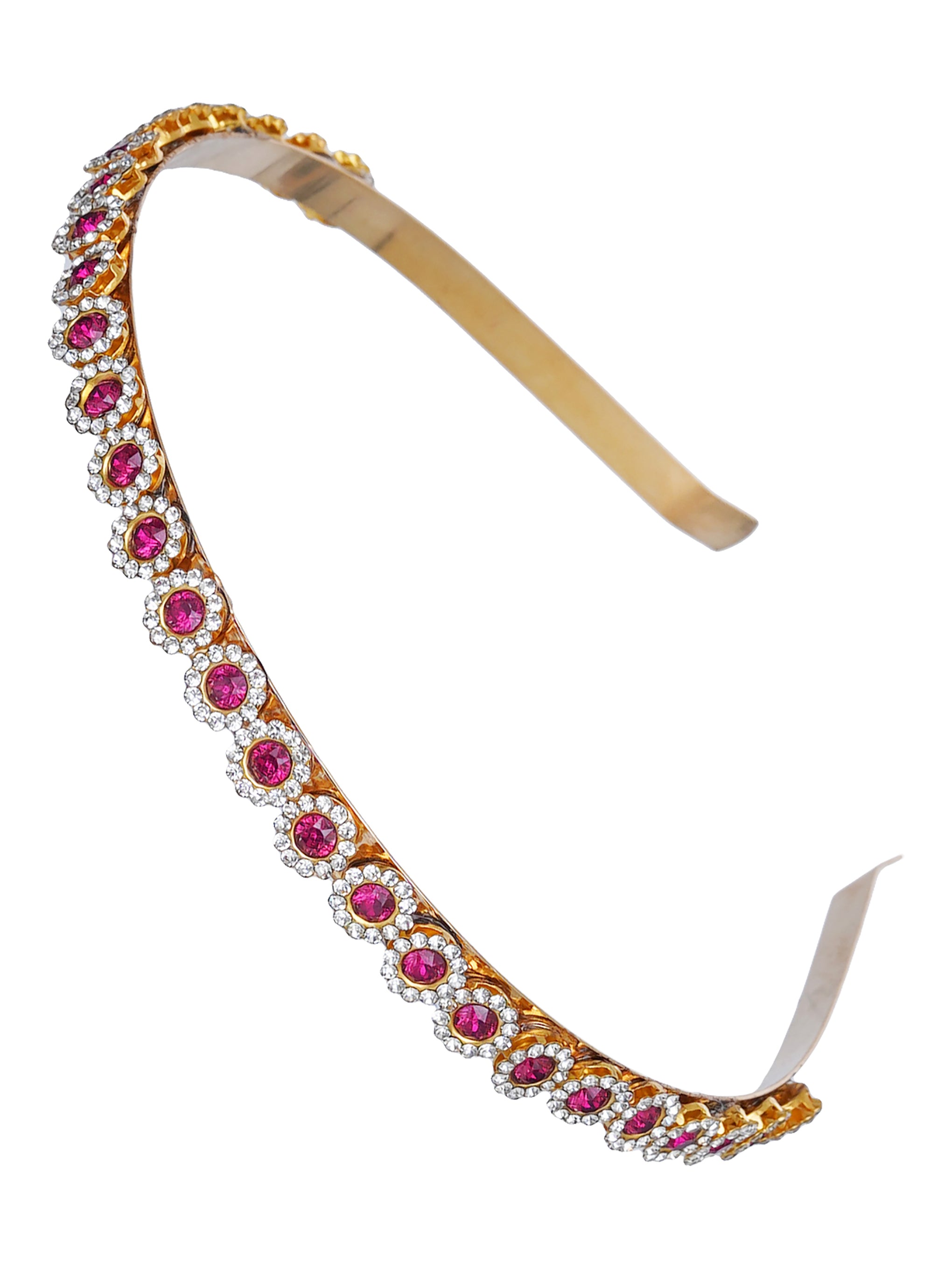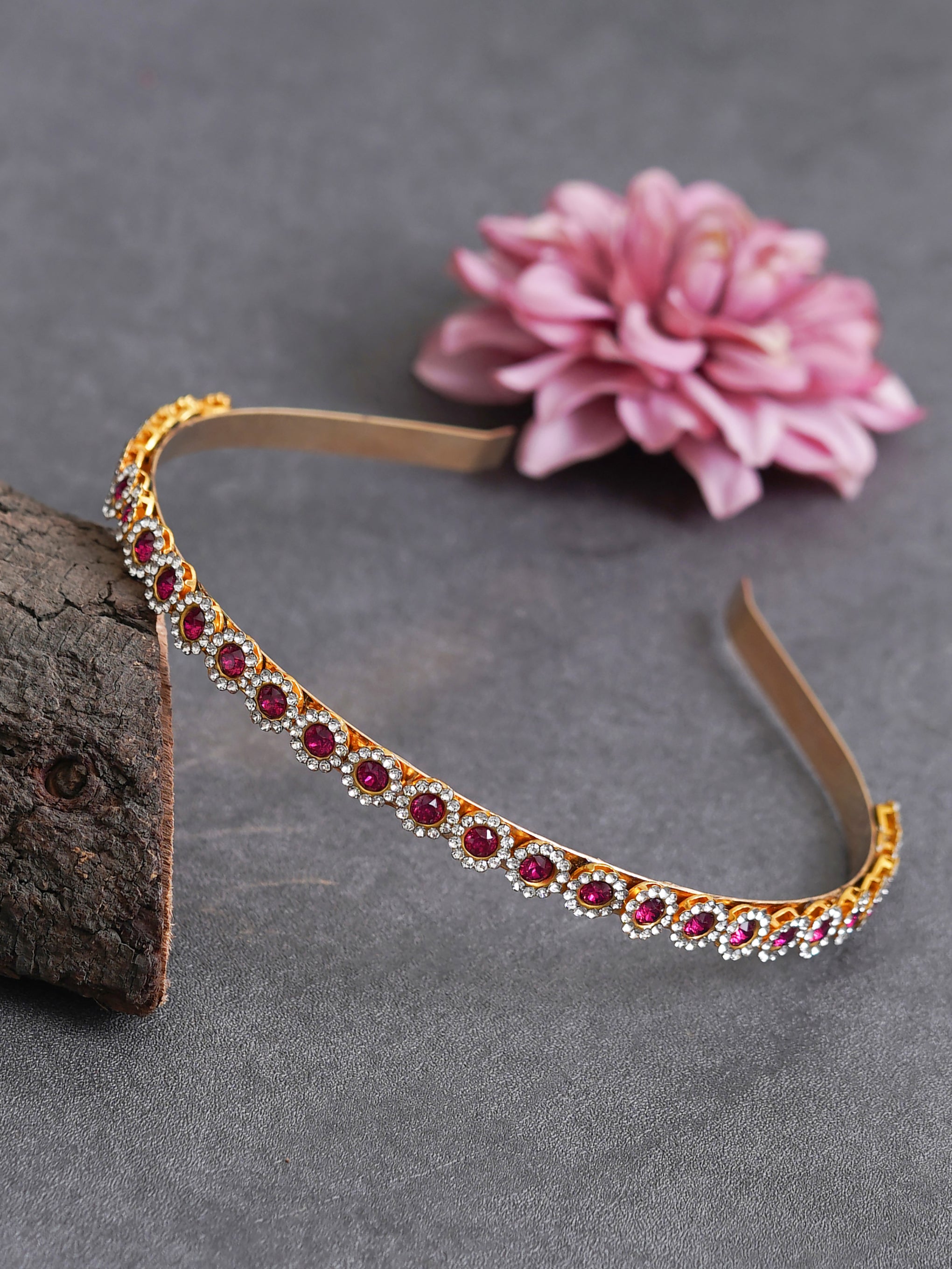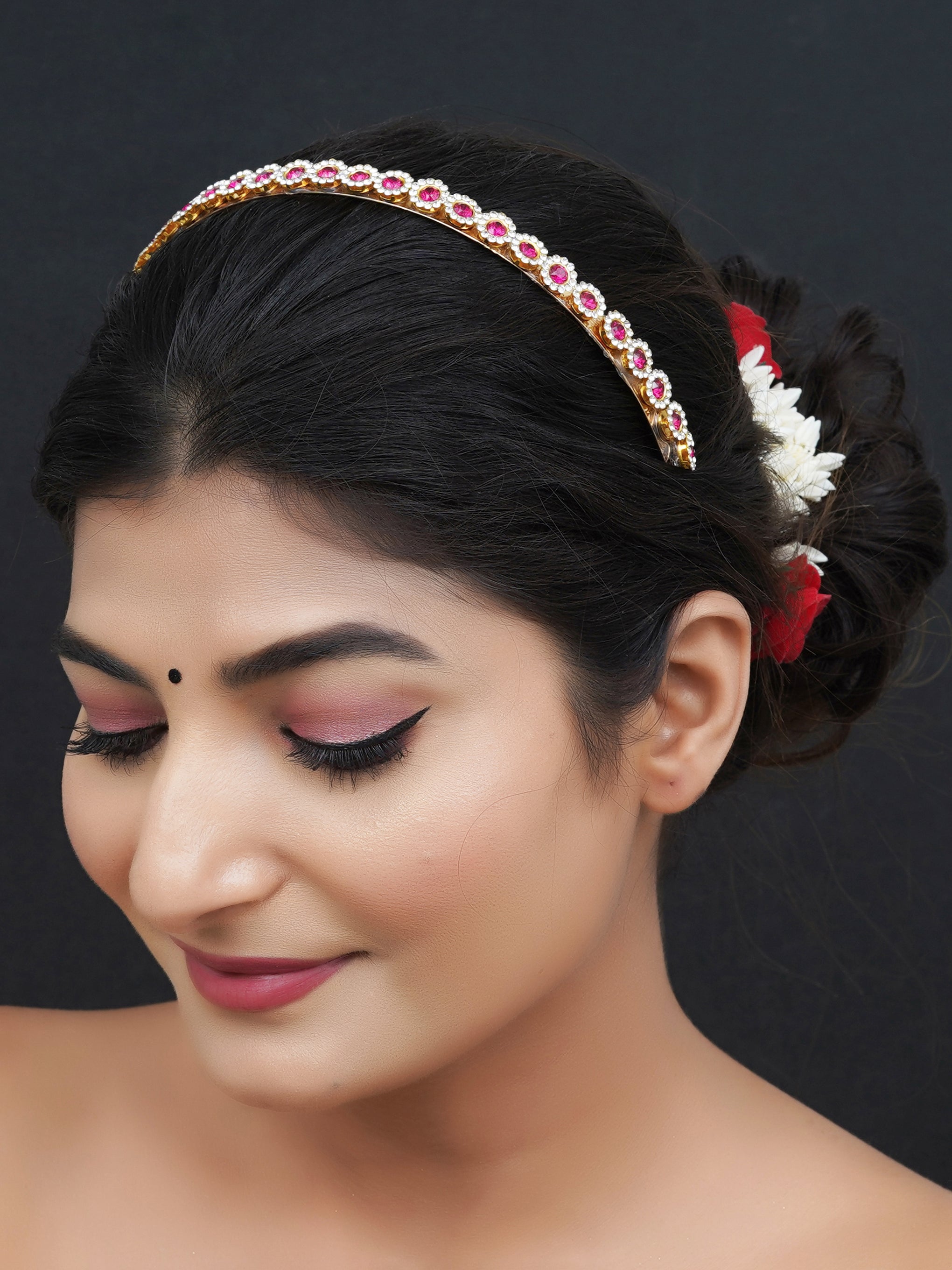Gold Plated Brass Hairband/Mathapatti Hair Band (Red)
