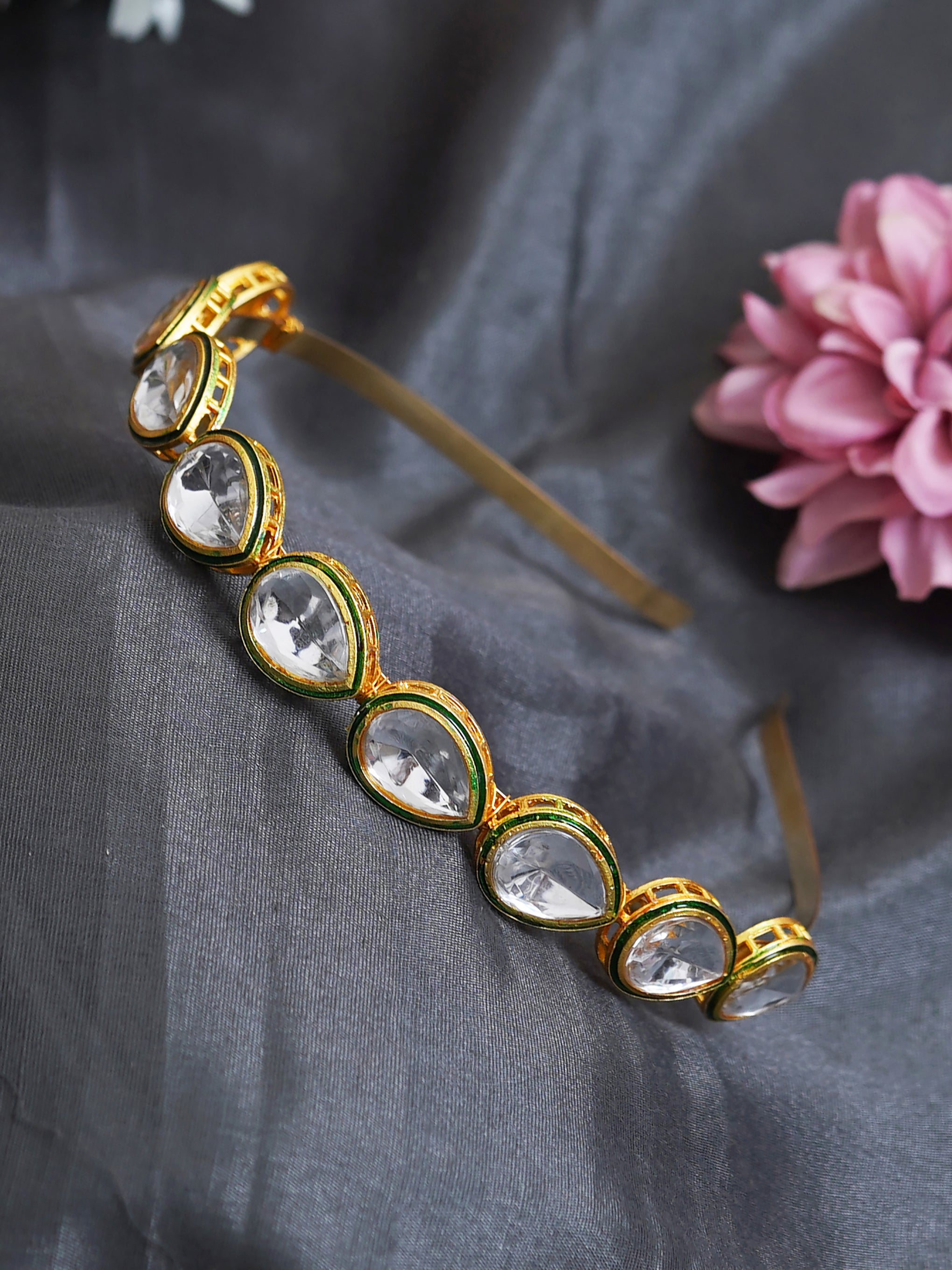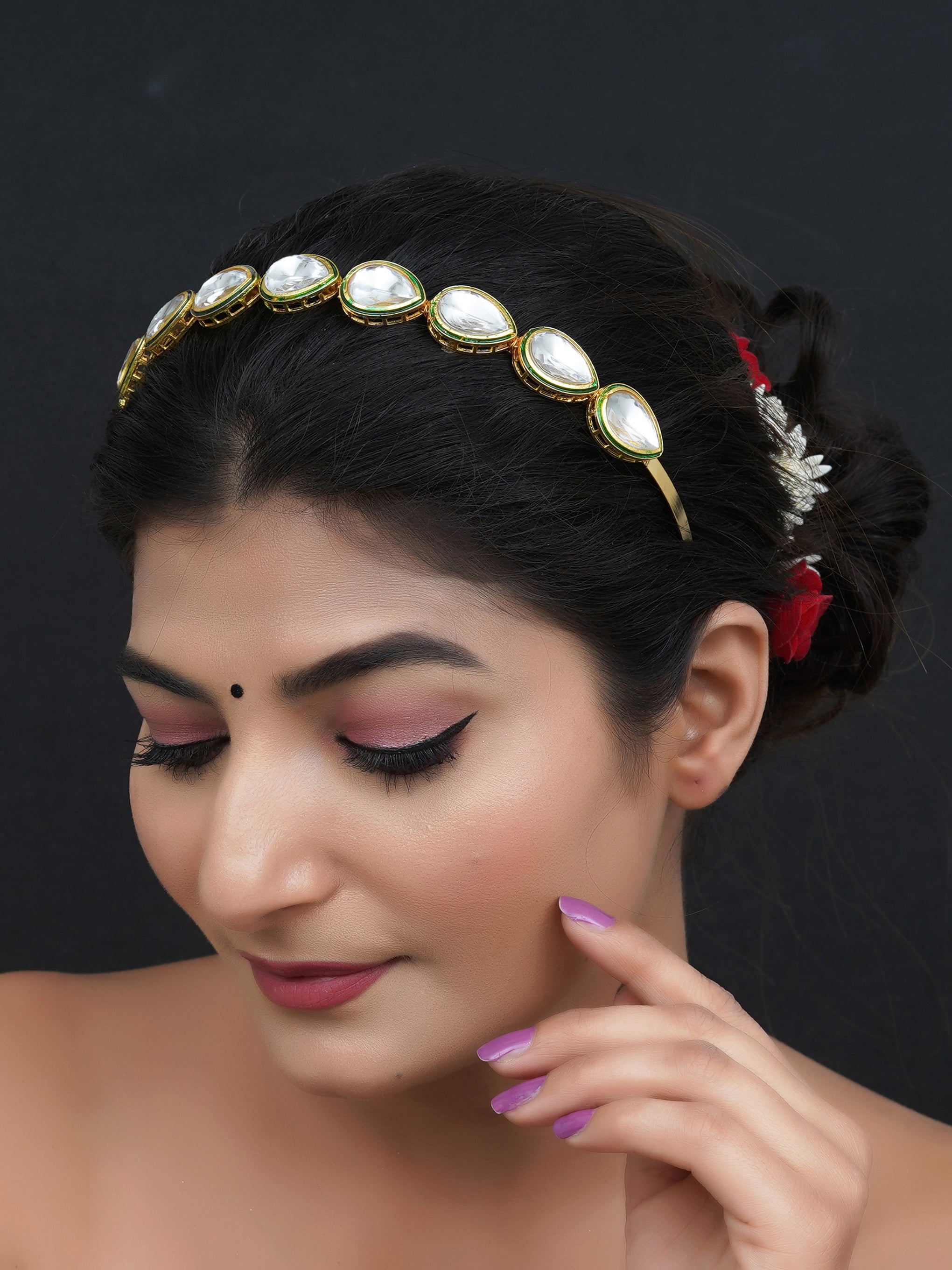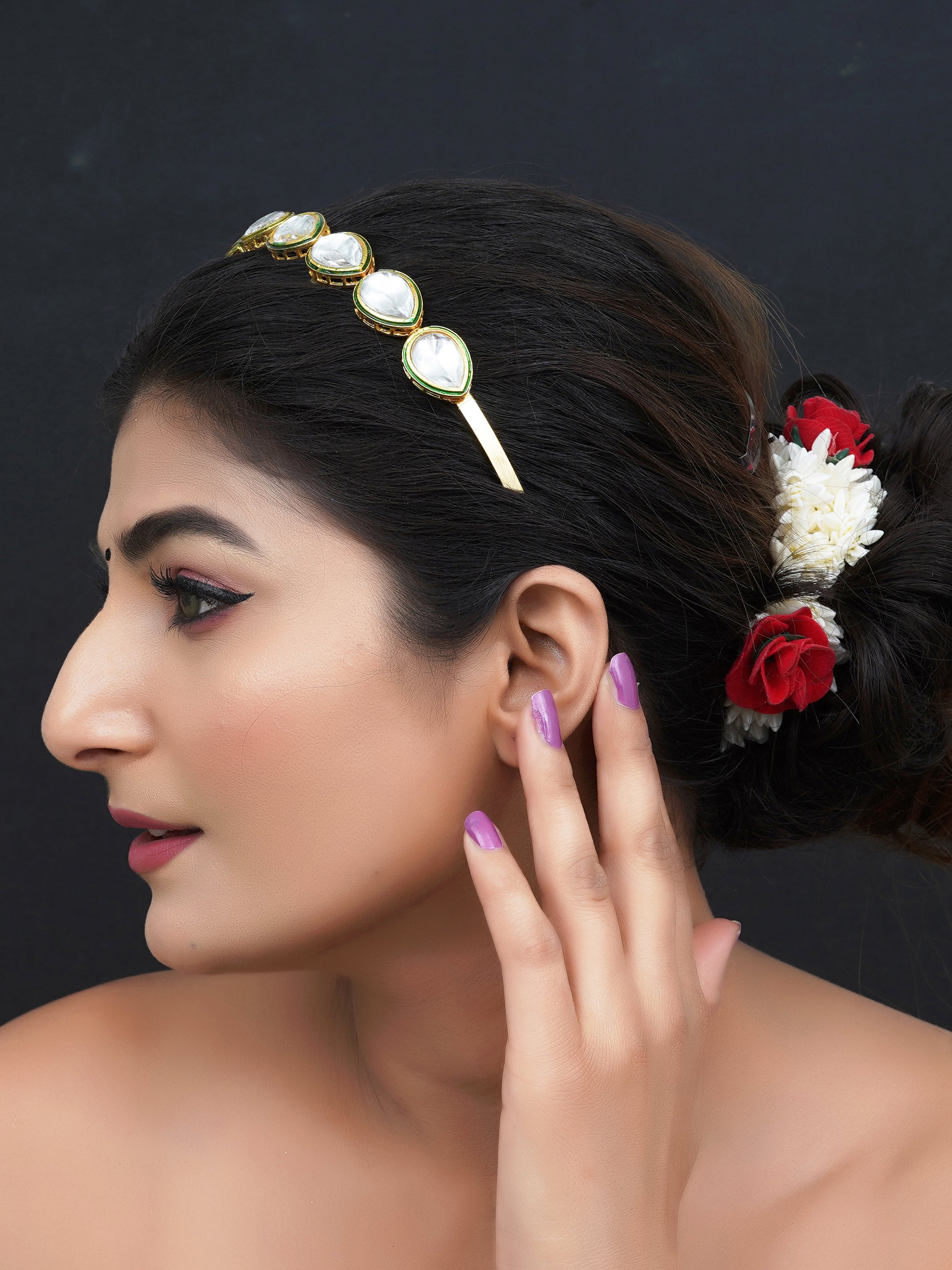 Gold Plated kundan Hairband/Mathapatti Hair Band (Gold)
