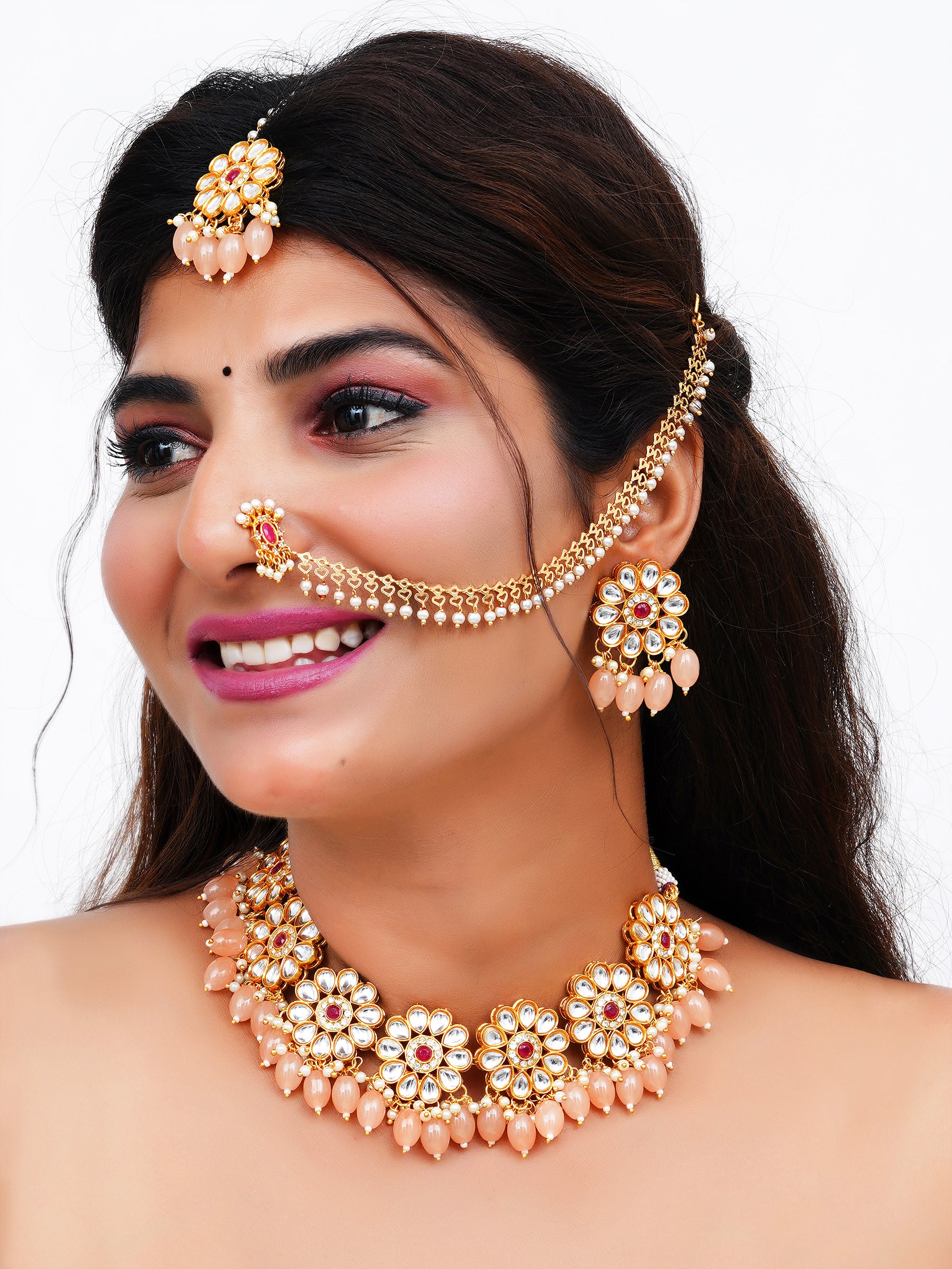 Brass Gold-plated Beige Jewellery Set