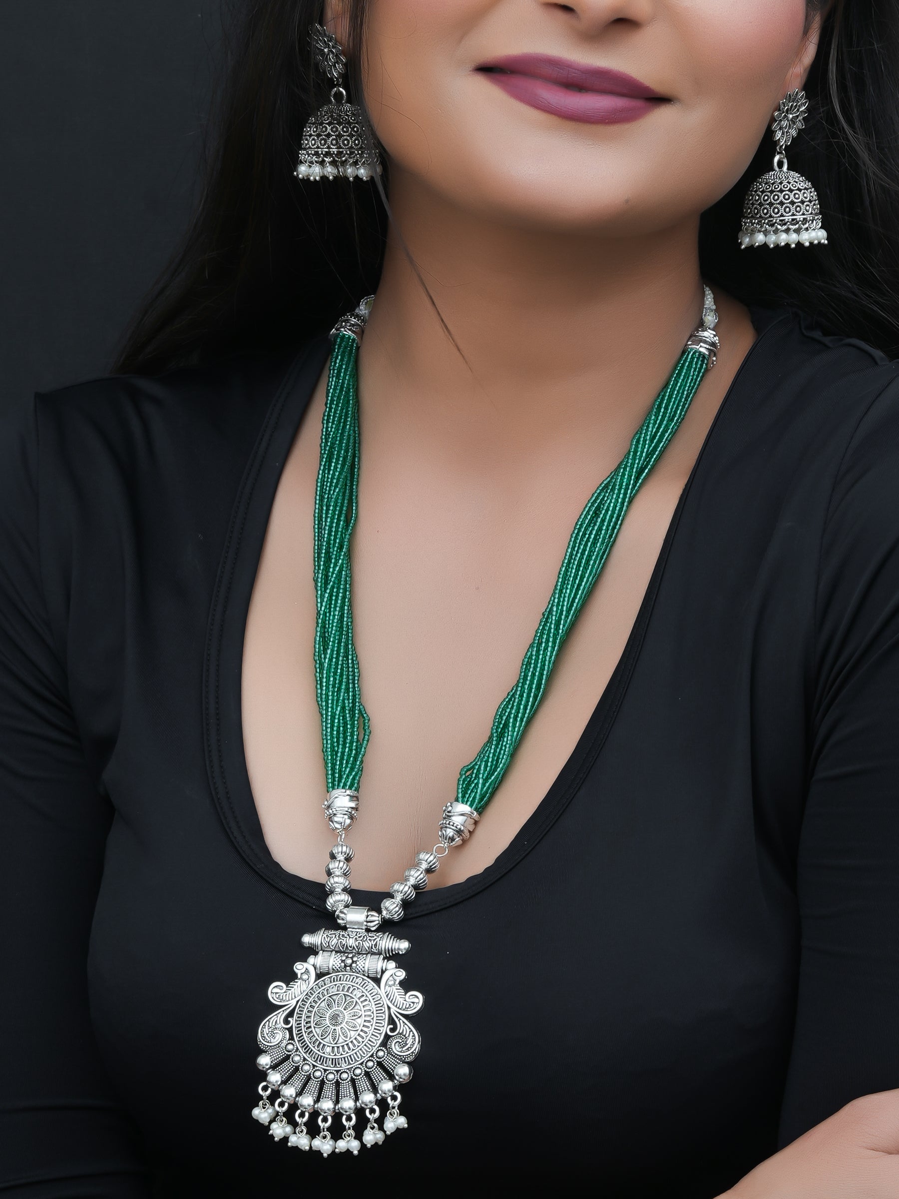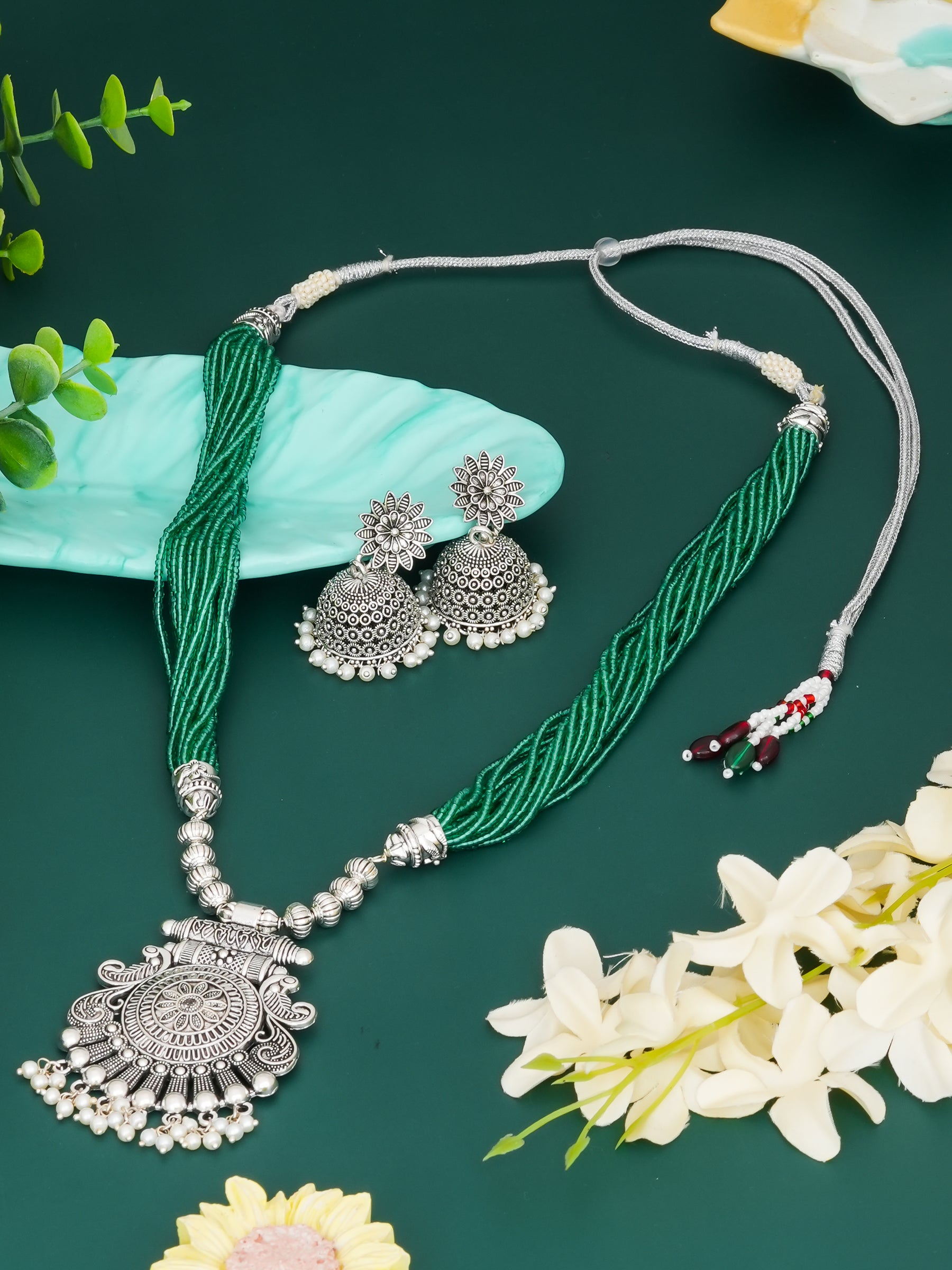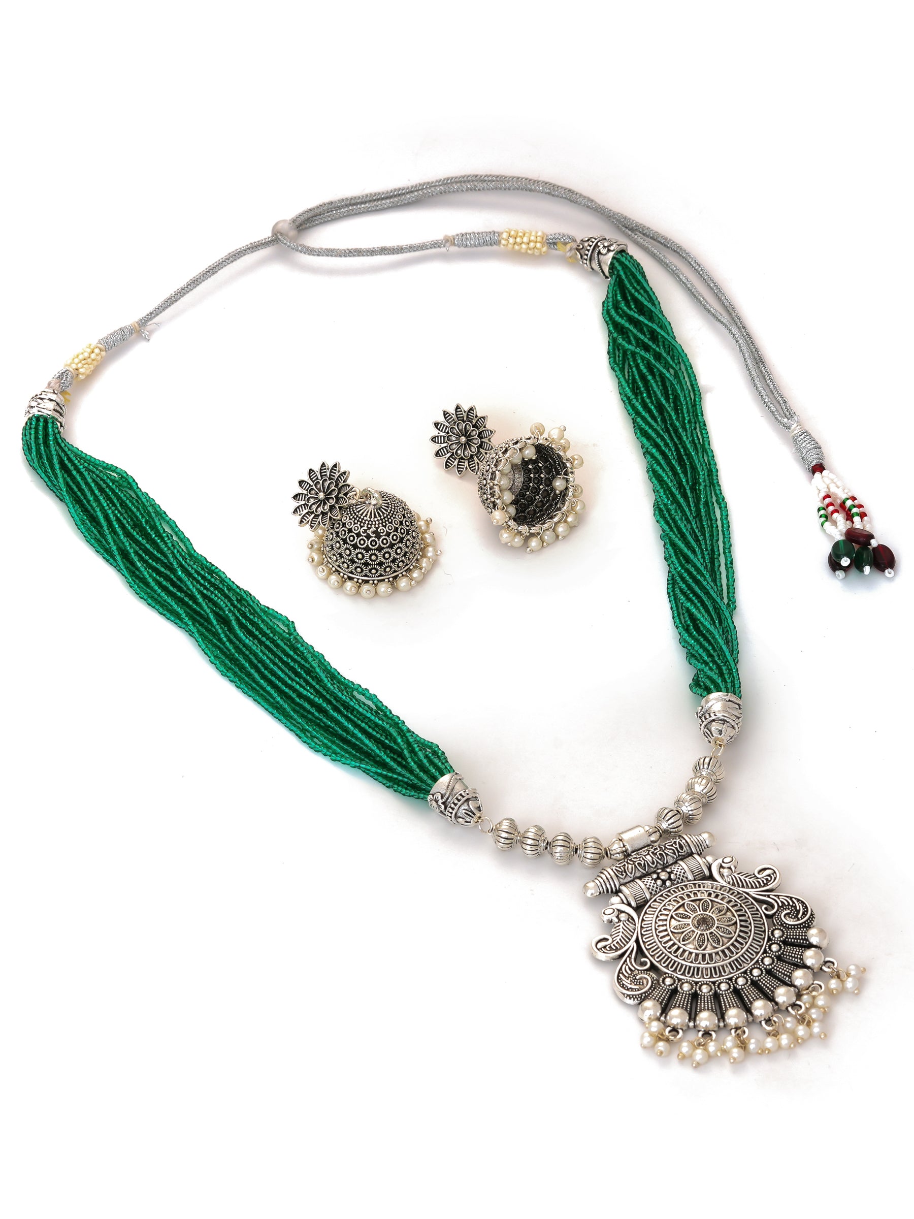 Elevate your style with this Brass Silver Jewel Set, a perfect blend of elegance and tradition. Crafted with high-quality brass and finished in a beautiful silver tone, this jewelry set is ideal for enhancing any ethnic or contemporary outfit. Lightweight and comfortable to wear, it adds a subtle shimmer and sophistication to your look, making it perfect for weddings, festivals, parties, or casual gatherings.