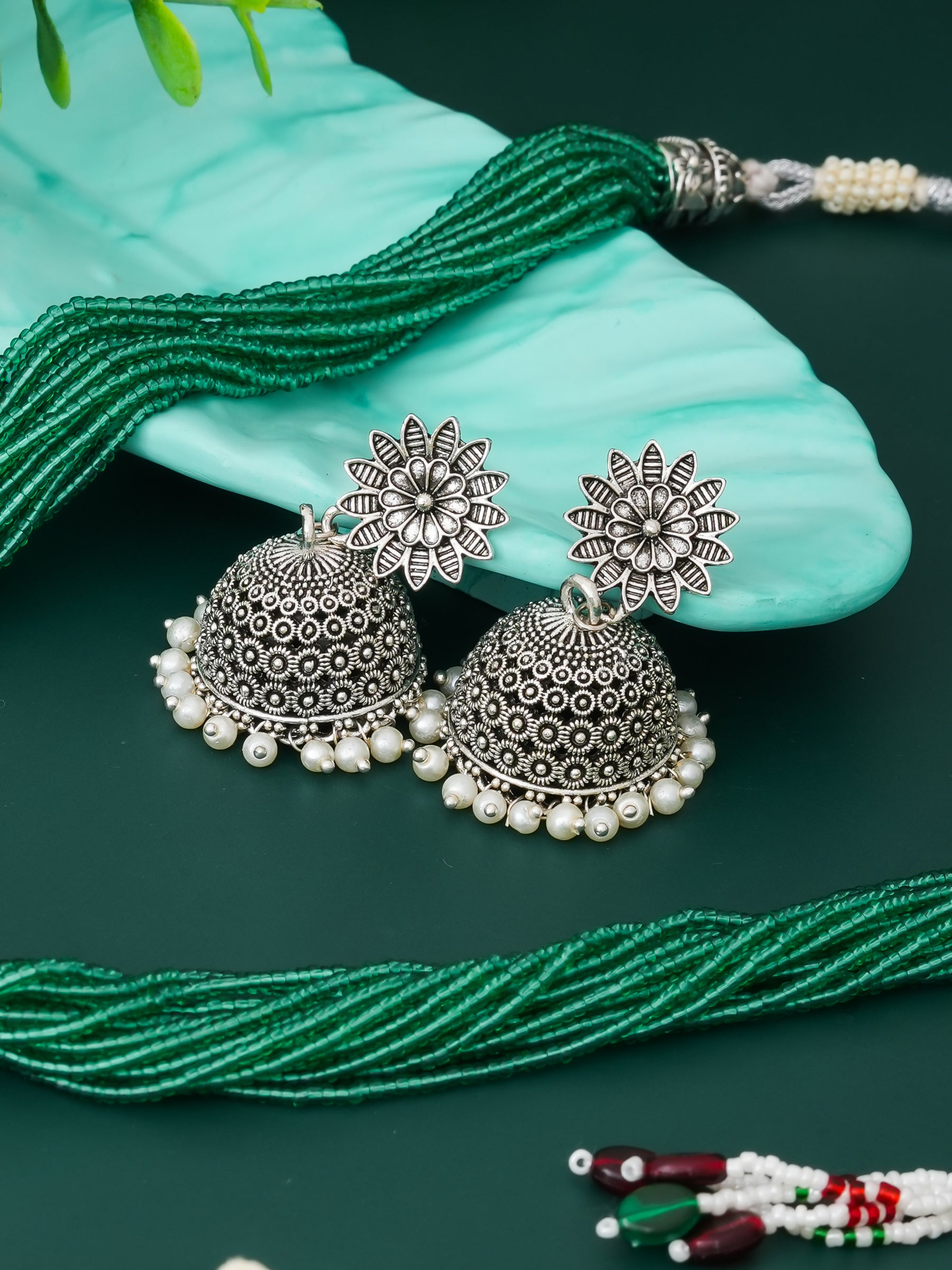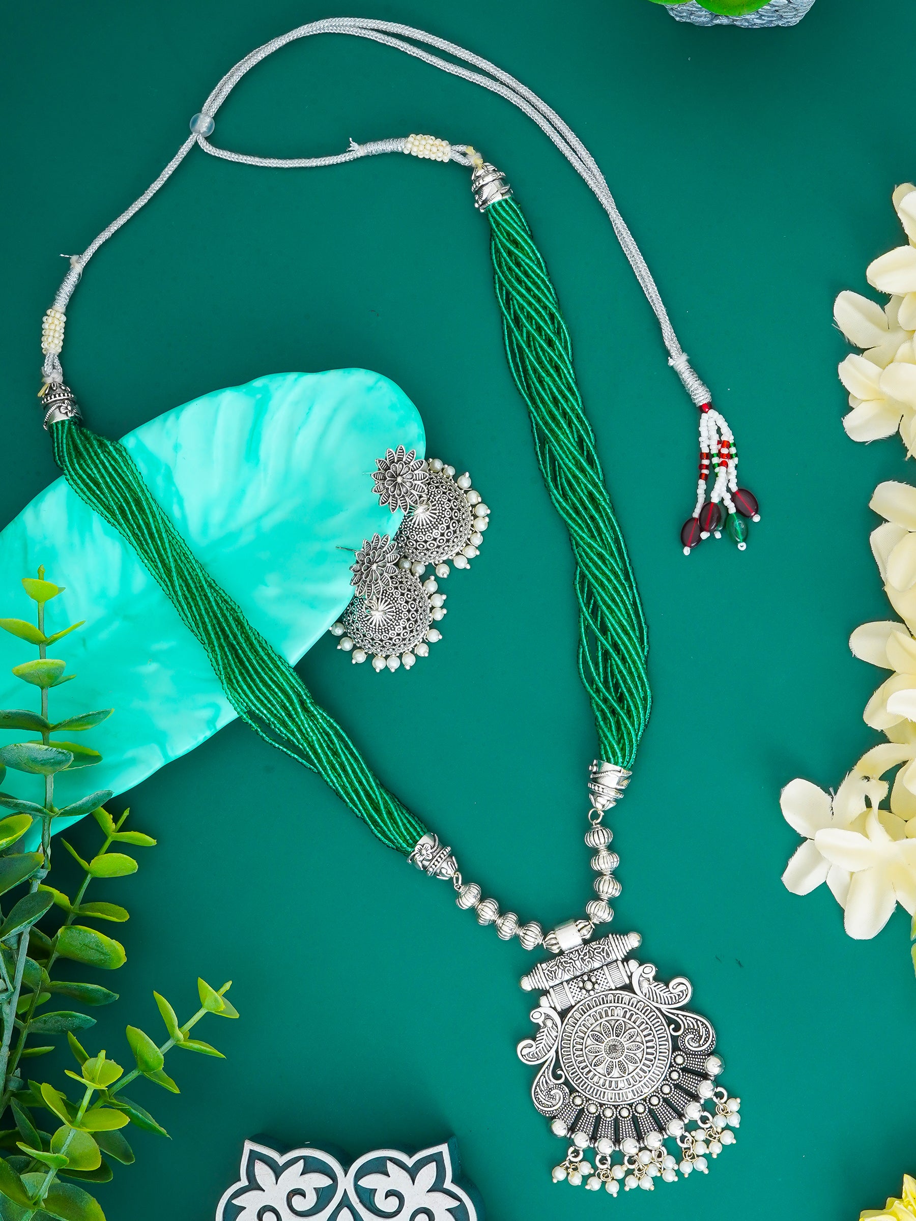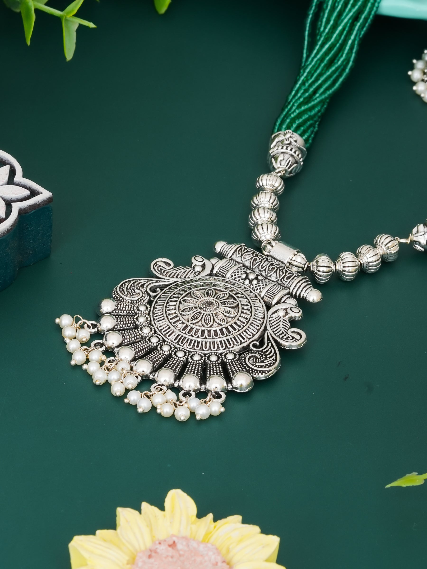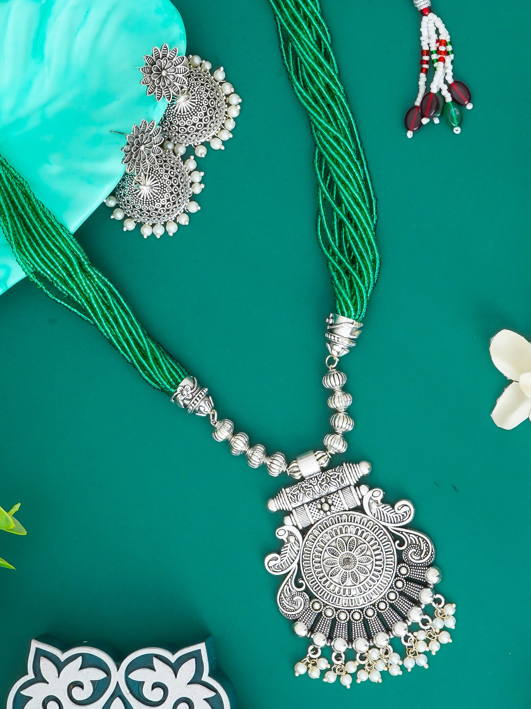 Elevate your style with this Brass Silver Jewel Set, a perfect blend of elegance and tradition. Crafted with high-quality brass and finished in a beautiful silver tone, this jewelry set is ideal for enhancing any ethnic or contemporary outfit. Lightweight and comfortable to wear, it adds a subtle shimmer and sophistication to your look, making it perfect for weddings, festivals, parties, or casual gatherings.