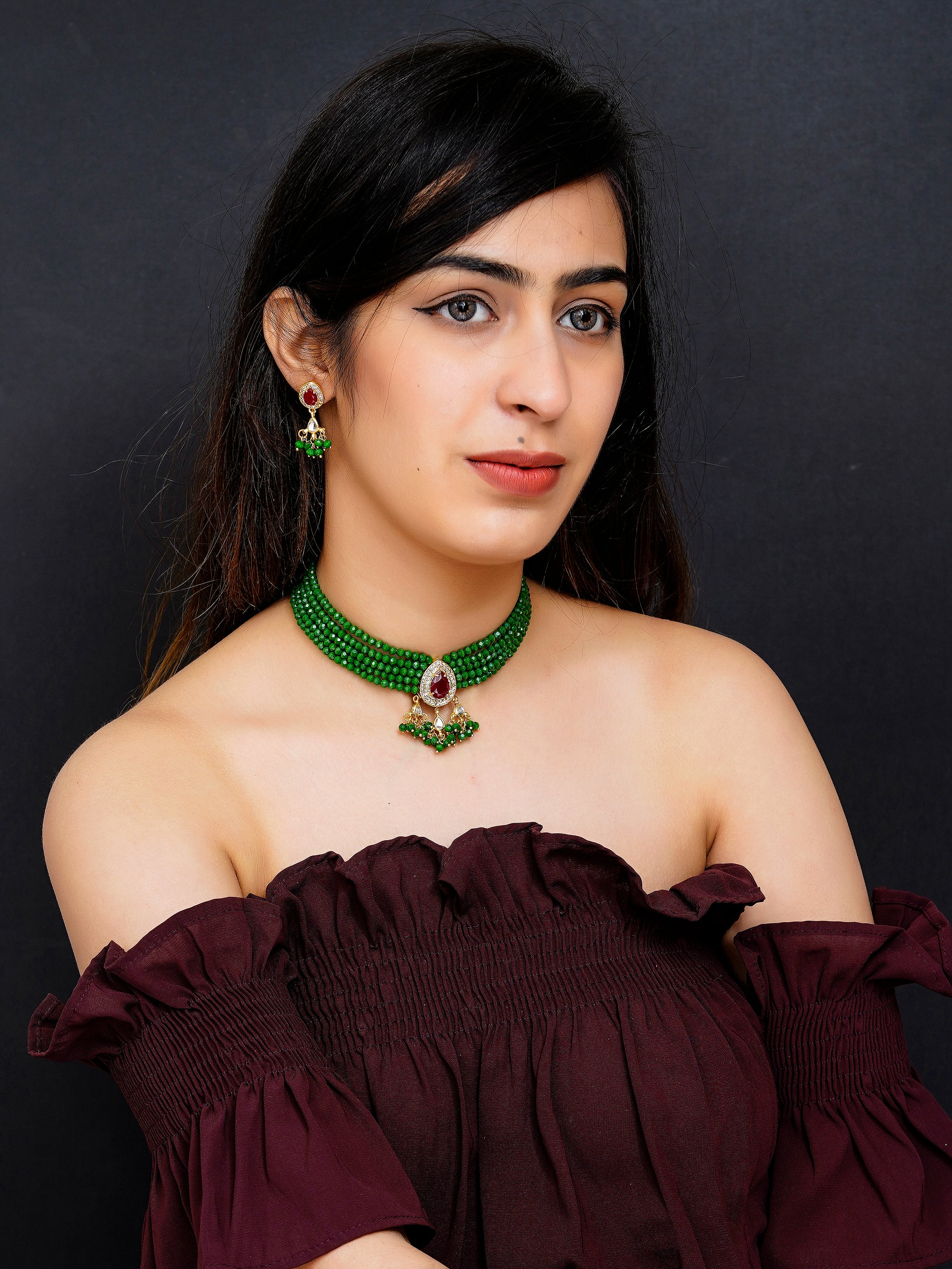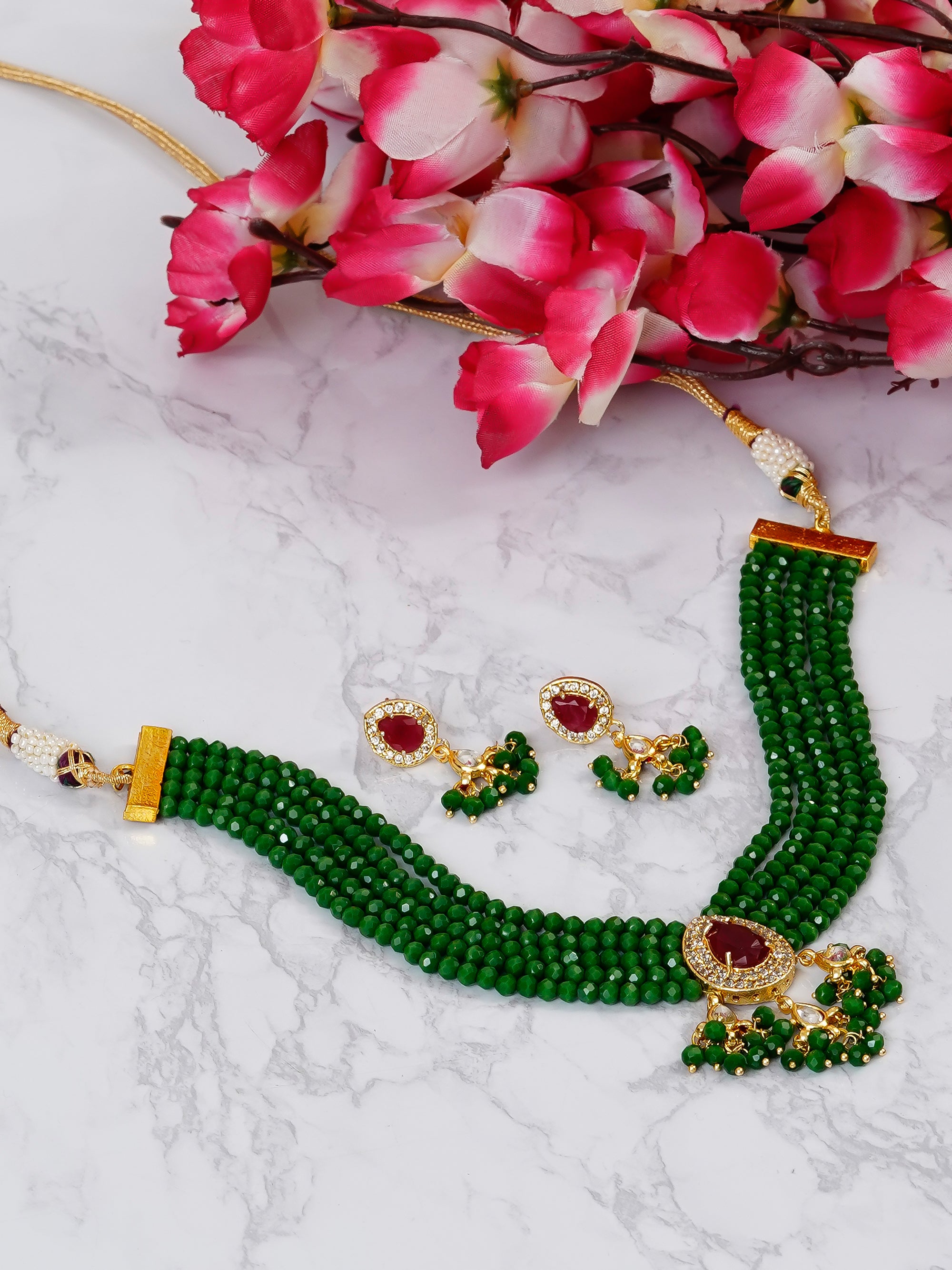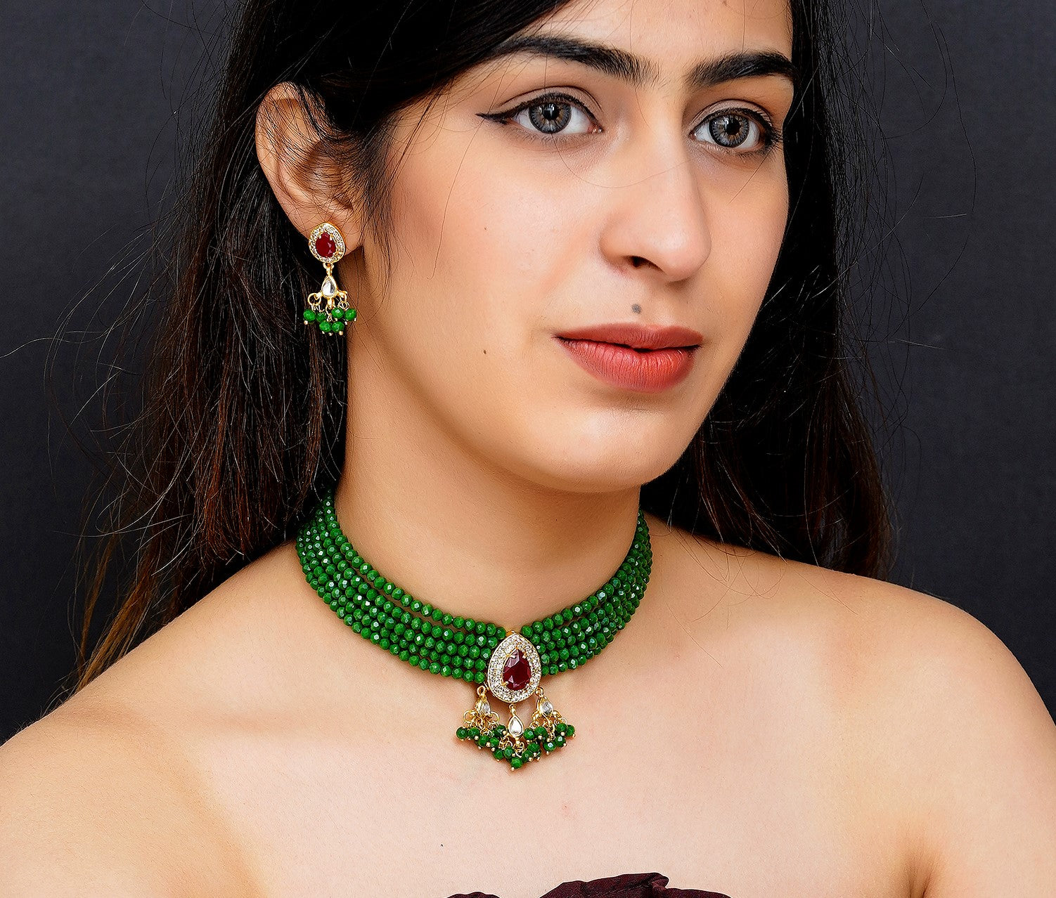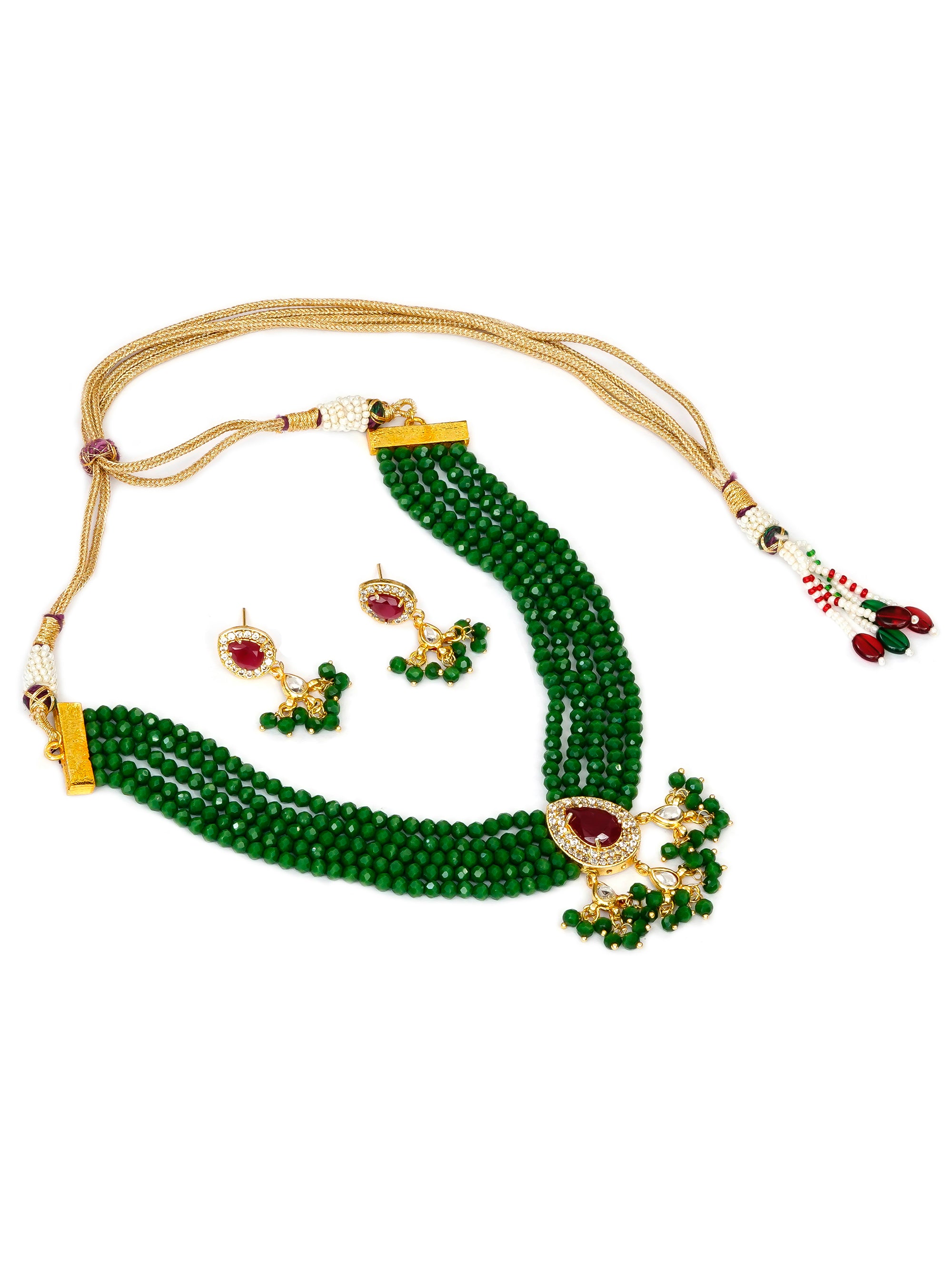 Glass Beads Gold-plated Kundan Designer Jaipuri Jewellery Set for Women