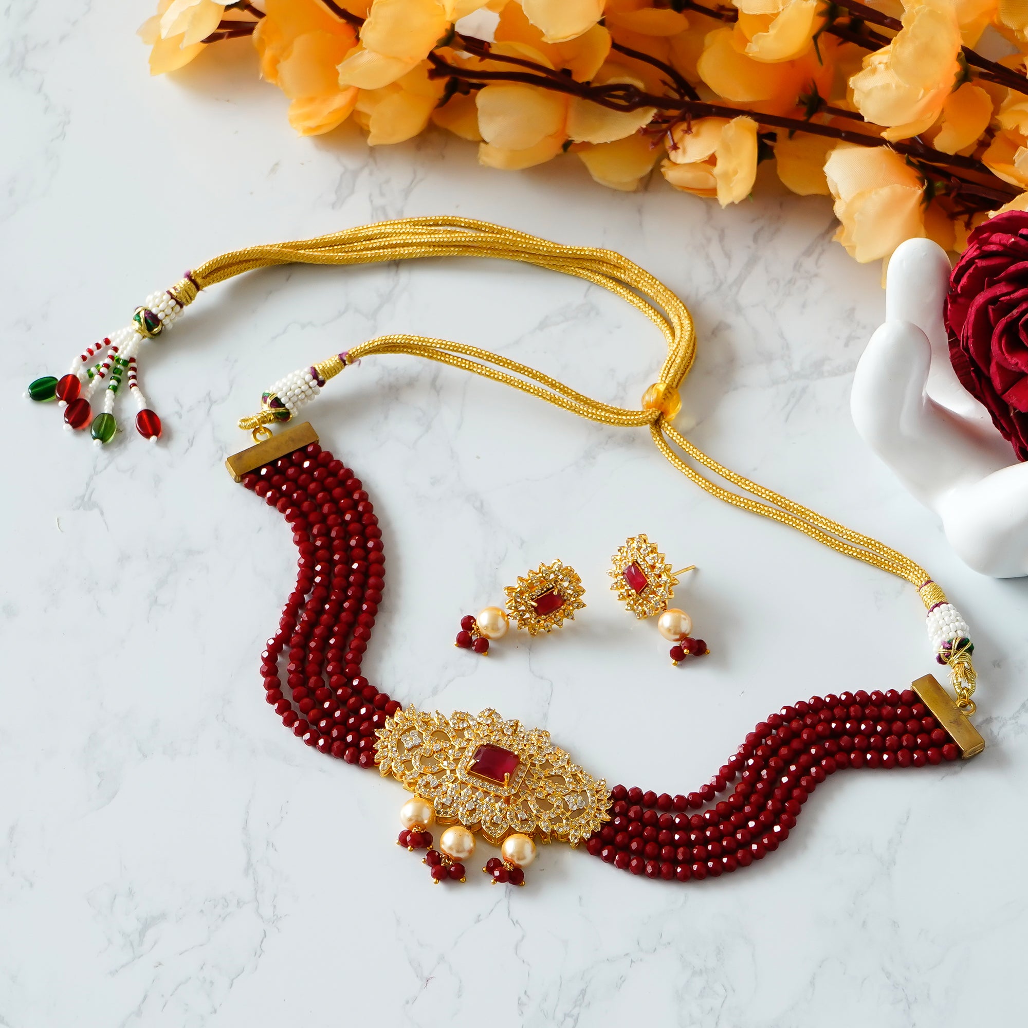 Gold-plated Maroon Jewel Set (Pack of 1)