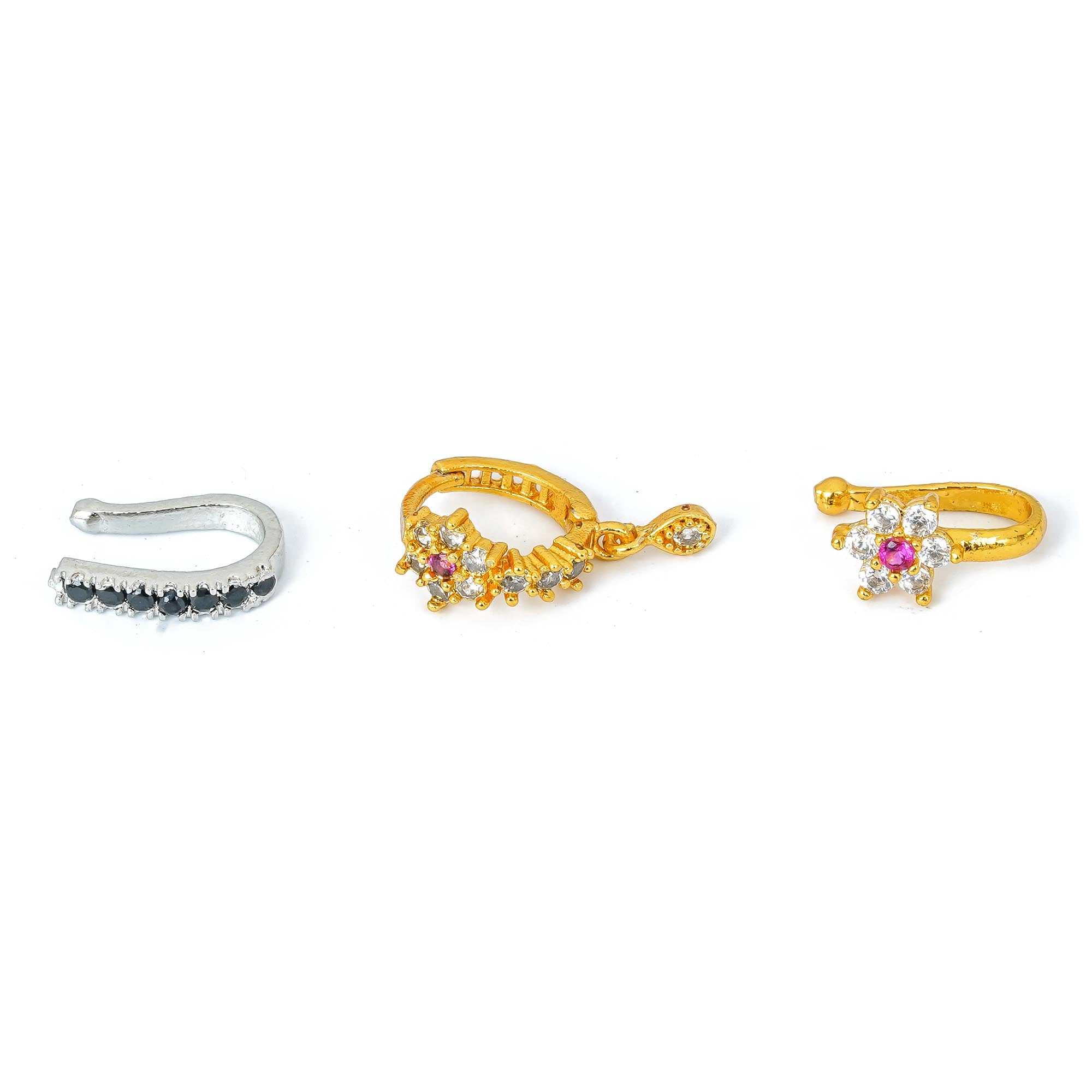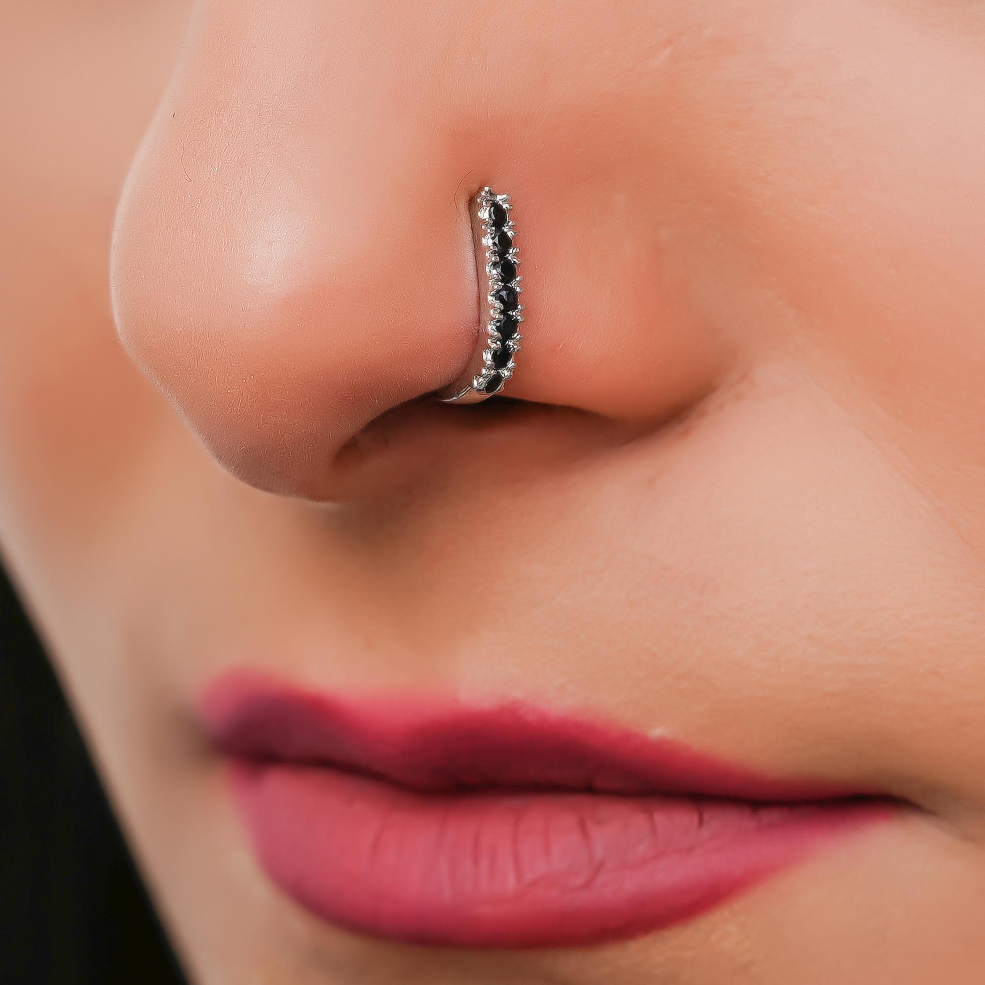 Silver oxidized Nose pin non piercing Oxidised Clip on nose ring Stud for women